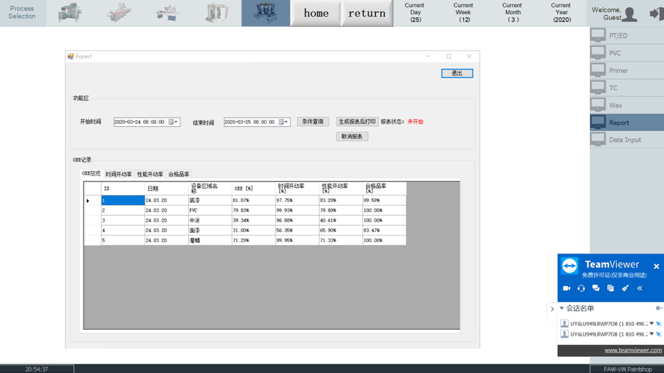 系统功能 配置底漆参数:底漆为涂装工艺中一个子工艺,对于的计算需要手工设置对应参数。 配置PVC参数:PVC为涂装工艺中一个子工艺,对于的计算需要手工设置对应参数。 配置中涂参数:中涂为涂装工艺中一个子工艺,对于的计算需要手工设置对应参数。 配置灌蜡参数:灌蜡为涂装工艺中一个子工艺,对于的计算需要手工设置对应参数。 配置灌蜡参数:灌蜡为涂装工艺中一个子工艺,对于的计算需要手工设置对应参数。 用订单号查询配方:查询某个编号的配方是否存在。 实时采集生产过程数据:对需要参与运算的多个生产过程进行实时采集,生产数据来自MES系统。 计算:利用配置参数和生产过程数据计算每天的值。 数据查询:查询指定日期内的数据 数据报表:导出指定日期内的报表。 |